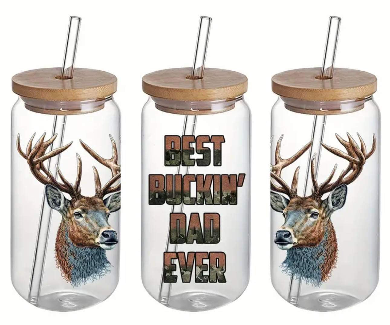 BEST BUCKIN DAD EVER - Clear 16oz Glass Tumbler