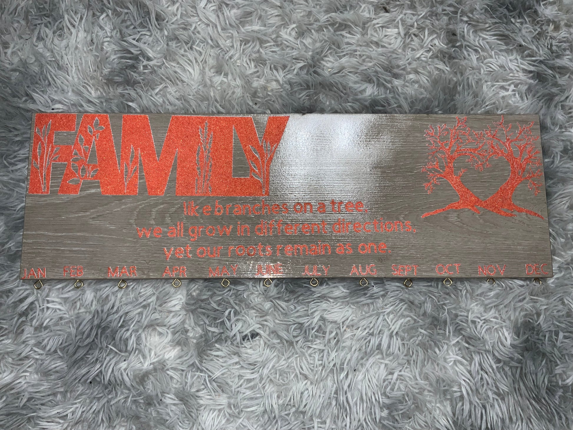 FAMILY-like branches on a tree we all grow in different directions, yet our roots remain as one- Family Birthday Calendar- Glitter Coral Vinyl