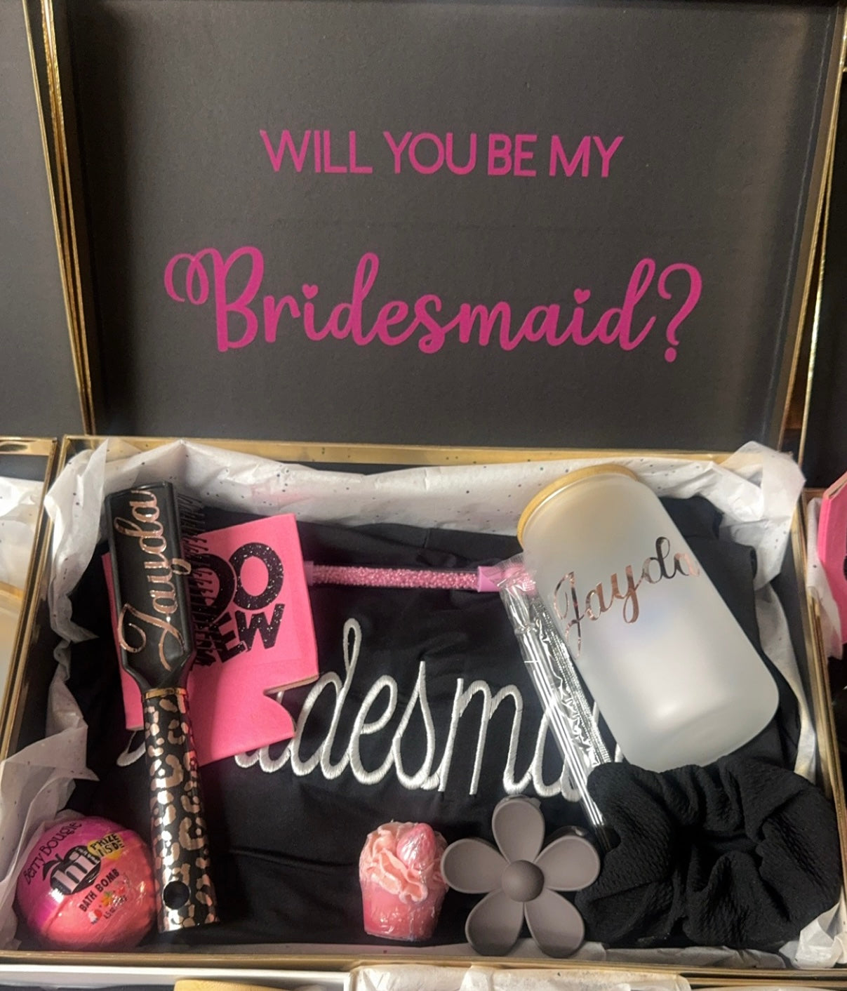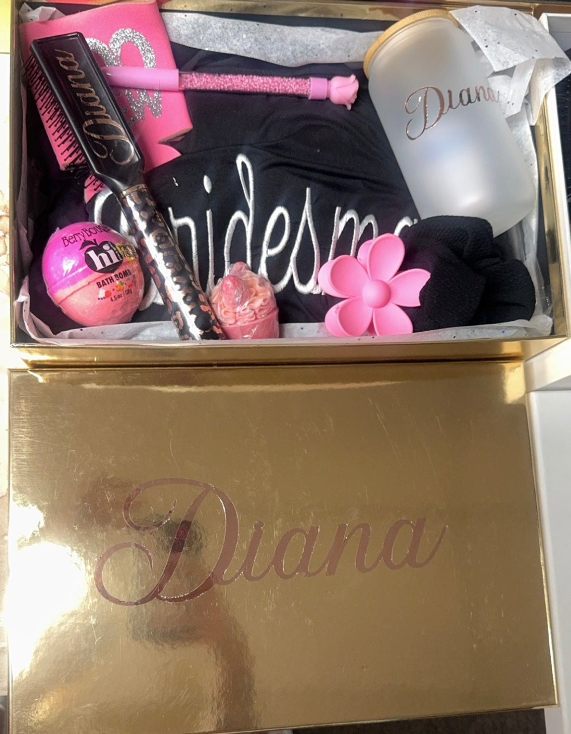 Your bridesmaids have been by your side through thick and thin, now it's time to thank them for always being there for you. This extravagant bridesmaid gift box features a variety of stylish items, to make your personalized gift one of a kind.